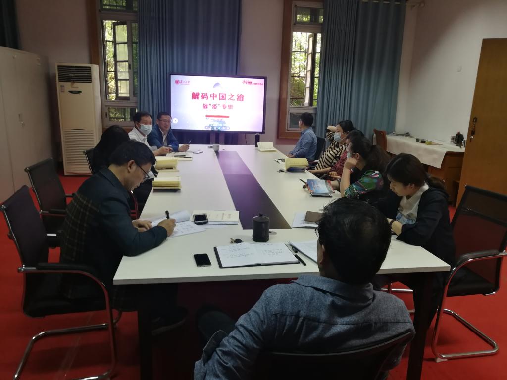 党员认真学习了复旦大学在线推出的“解码中国之治—战疫专辑”微党课。微党课紧扣习近平总书记关于战“疫”的重要讲话精神,特别是关于坚持党的全面领导、推进国家治理体系和治理能力现代化、统筹推进疫情防控和经济社会发展以及依法战“疫”、完善重大疫情防控体制机制和健全国家公共卫生应急管理体系等重要论述,分五个专题进行理论解读,帮助党员们立体全面地学习和领会总书记讲话精神。