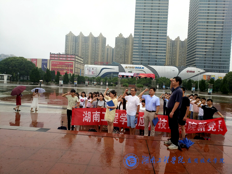 6月23日下午1:30,我院2017年预备党员入党宣誓仪式于湘潭市东方红广场隆重举行,出席本次宣誓仪式的有我院院长李光中、党总支副书记徐粤宇、团总支书记唐冰、支部书记孙传旺、蒋惠筠以及48名各支部预备党员。本次宣誓仪式由唐冰主持。