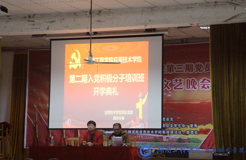 3月10日晚7:15,我院第二期入党积极分子培训班开班典礼在南校区一教四楼学生活动中心举行。我院党总支书记李爱国、团总支书记唐冰出席典礼,全体入党积极分子参加,唐冰主持。