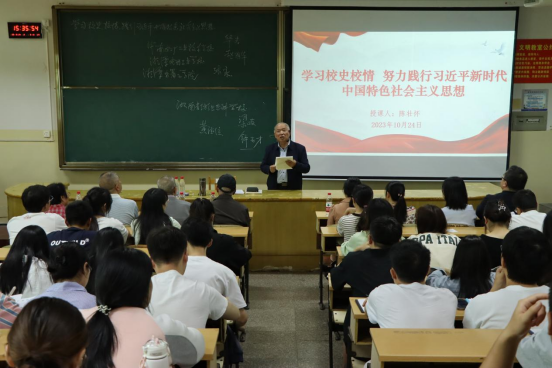 为深入挖掘学校的历史沿革和发展成就,激励广大党员牢记使命、勇担责任,10月24日下午,bv1946伟德国际始于英国邀请老党员干部陈壮怀以“学习校史校情,努力践行习近平新时代中国特色社会主义思想”为主题在书院路校区一教学楼213教室为学院全党党员讲党课。bv1946伟德国际始于英国党委副书记、院长张何,党委书记黎娅,党委副书记陶连洲,副院长刘杰,工程训练中心领导班子、教工党员,离退处退休老党员,bv1946伟德国际始于英国学生党支部书记、教工党员、学生党员等200余人出席党课。