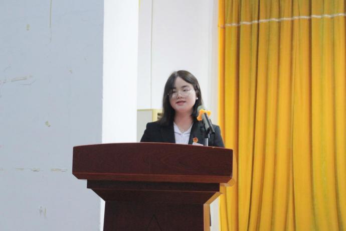 仪式伊始,全体成员起立奏唱国歌。市场营销2381班喻茹茵作为代表发言,她真挚且坚定地表达了自己对党的无限向往与热爱,承诺将珍惜此次培训机会,认真学习党的理论知识,不断提升自我。同时她也呼吁同学们要以此次培训为契机,深入学习党的理论和路线方针政策,不断提高政治素养和专业能力,向党组织靠拢。