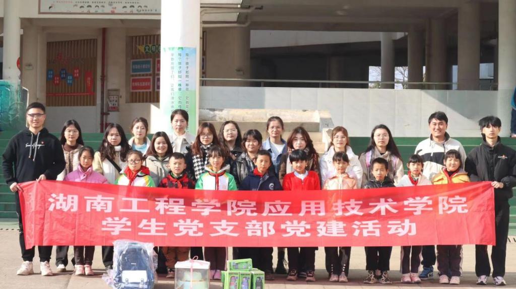 下午1点,老师和学生党员们带着蛋糕、书包、水杯等物资抵达昭山和平小学,校工会主席周凤娇对大家的到来表示热烈的欢迎,并带领党员们参观小朋友们的手绘及农作物。随后,校长邓盼带领十名小学生在教学楼前坪与党员同志们见面。小朋友依次介绍了自己的兴趣爱好,党员们分享学习经验及方法并为他们送上美好祝福。在愉快的游戏后,学生党员们给小朋友们送上了书包和水杯、分发蛋糕。随着上课铃声的响起,小朋友们一一和党员们挥手作别,本次慰问活动也在轻松的氛围中很快画上了圆满的句号。