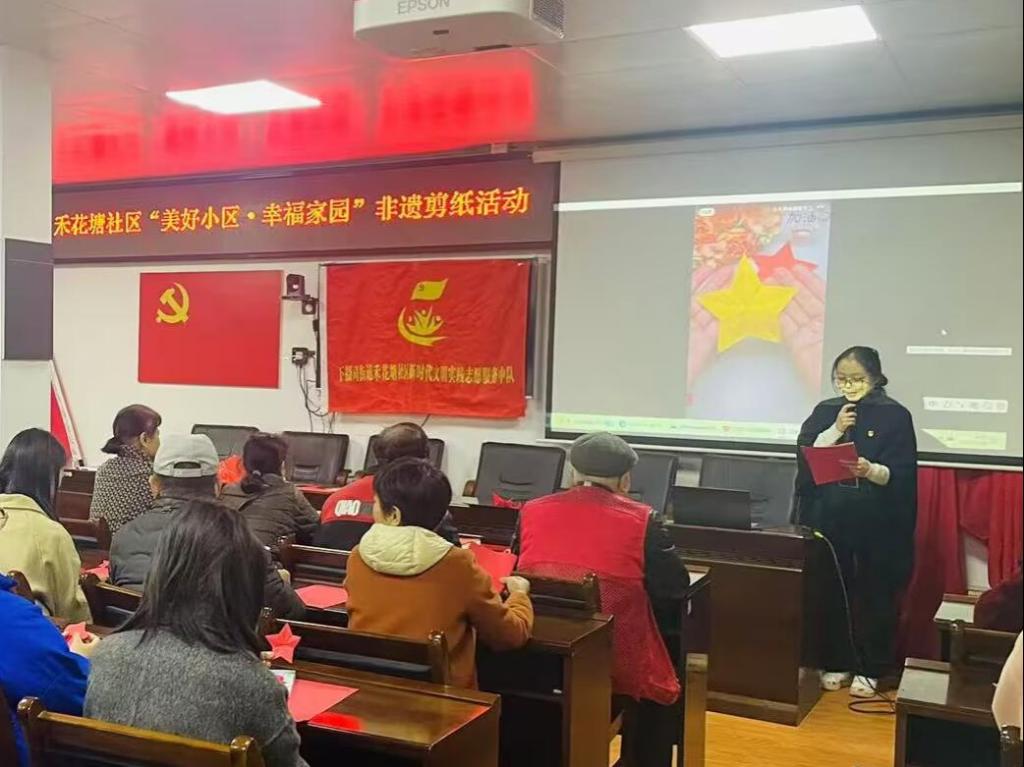 为加强党员同志们之间的交流,进一步学习和弘扬中华优秀传统文化,感受传统文化的独特魅力,增强民族自豪感与使命感,11月26日第五党支部组织了以“非遗剪纸蕴‘廉’情,红色基因永相传”为主题的党员实践活动。本次党员实践活动由bv1946伟德国际始于英国第五党支部学生党员与禾花塘社区的居民共同参与。