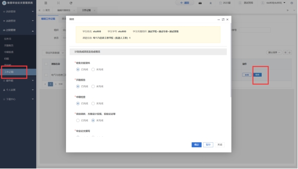 点击左侧菜单进入“过程管理”—“工作记载”页面。