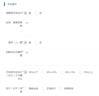 从第8周起(4月18日8:00)学生进入“过程管理”的中期检查环节,填写并提交指导老师审核。