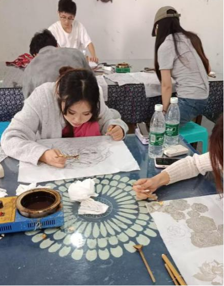 为提升艺术专业学生实践创作能力,感受中华优秀传统文化魅力,学院开展为期15天的写生实践活动。同学们以艺术之笔勾勒古寨风貌,以文化体验传承匠心技艺,还深入体验了安顺蜡染、木雕彩绘等非遗技艺。在蜡染工坊,大家跟随传承人学习传统蜡染制作工艺,从融化蜂蜡、绘制图案到浸染上色,每一个步骤都充满挑战与惊喜。当一幅幅蓝白相间、独具特色的蜡染作品在手中诞生时,同学们深刻感受到了传统技艺的独特魅力。