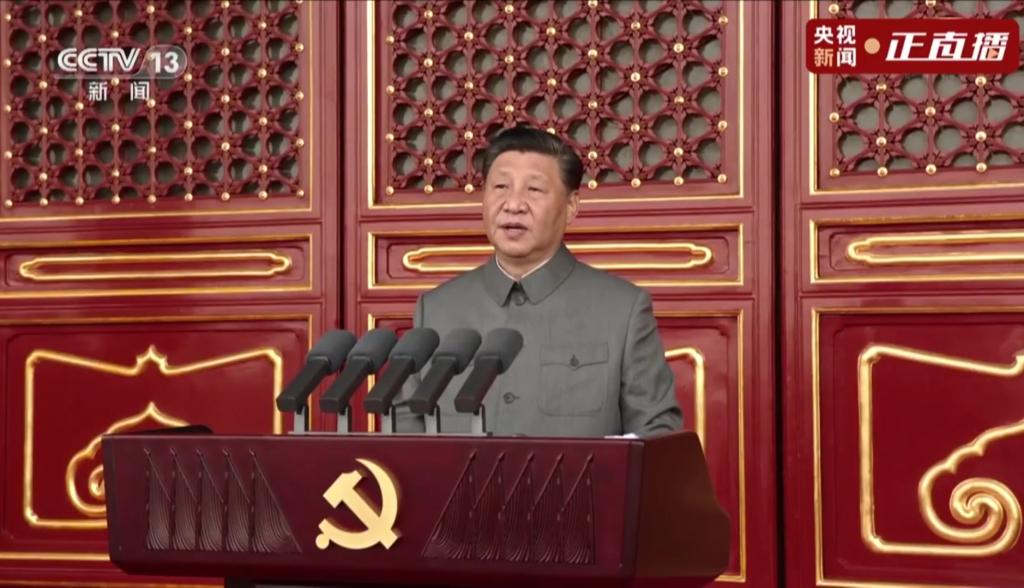 习近平代表党和人民庄严宣告,经过全党全国各族人民持续奋斗,我们实现了第一个百年奋斗目标,在中华大地上全面建成了小康社会,历史性地解决了绝对贫困问题,正在意气风发向着全面建成社会主义现代化强国的第二个百年奋斗目标迈进。这是中华民族的伟大光荣!这是中国人民的伟大光荣!这是中国共产党的伟大光荣!