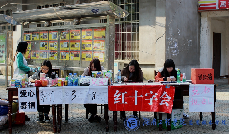 “亲们,只要三元买八元东西,商品有价,爱心无价” 3月27日早上,伟的国际1946bv红十字会在南校区校园商店前坪,为湘潭县青山桥镇龙舞小学的孩子们举办义卖,筹集善款。
