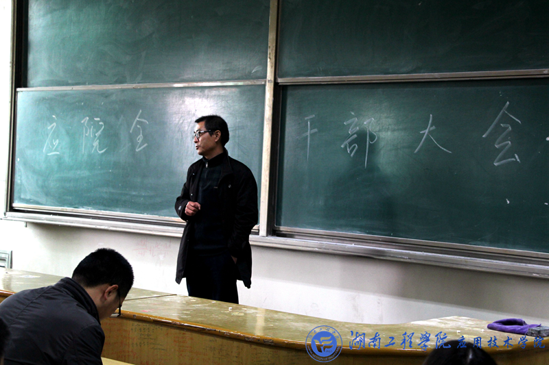 1月3日中午12:30,我院于南校区第一教学楼213教室召开了全体学生干部大会,党总支副书记徐粤宇、学生办公室主任刘红石、团总支书记唐冰、学生辅导员老师孙传旺、曹时艳及全体学生干部参加本次会议。会议由团总支副书记向洪亮主持。