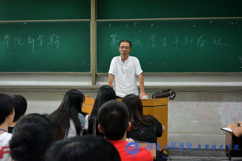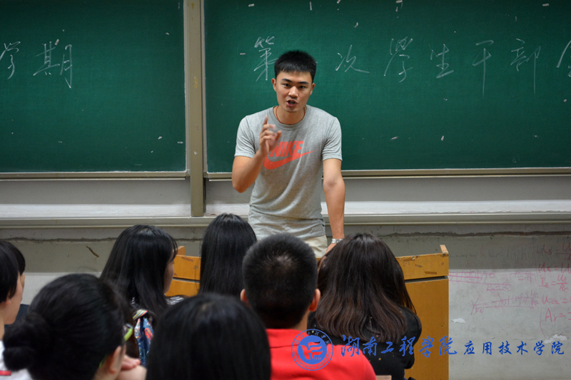 紧接着唐冰老师针对徐书记提出的要求和问题再进行了补充说明,强调了在13级干部和班委中选拔班导的事情。他说,班导就好像一面镜子,班导是什么样,他班上的学生就会是什么样。所以一定要选出品学兼优的班导们,传播自身的正能量,造就良好的班级风气。最后,学生会副主席莫志毅祝愿新北南一体齐心协力共创应院辉煌。