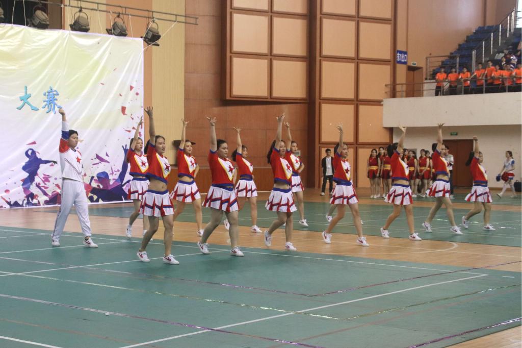 紧接着技巧啦啦操比赛开始,表演队员们手持两个花球,以饱满的激情舞动着,将大学生的朝气活力表现的淋漓尽致。经过紧张激烈的比赛后,管理学院以9.52的得分获得第一名,我院则以9.33分取得第二名。