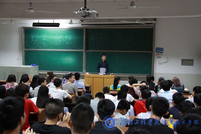 个个班级都用不同的活动来理解“八字箴言”。物流1481班冲破了以往的旧形式,采用了活动结合主题的方式,通过一个叫“正话反说”的小游戏,让同学们既深刻地理解了箴言的意义又在活动中得到了乐趣。而电气1483班的主持人则为同学们讲解了何为“勤学,俢徳、明辨、笃实”,并列举了古今中外的事例帮助同学们理解。随后,同学们积极发言,互相交流对八字真言的看法以及在学习生活中如何践行真言。有的人说要树立远大理想,积极学习文化知识。有的人说要加强品德修养,树立良好的精神文明风貌,大家各抒己见,滔滔不绝。