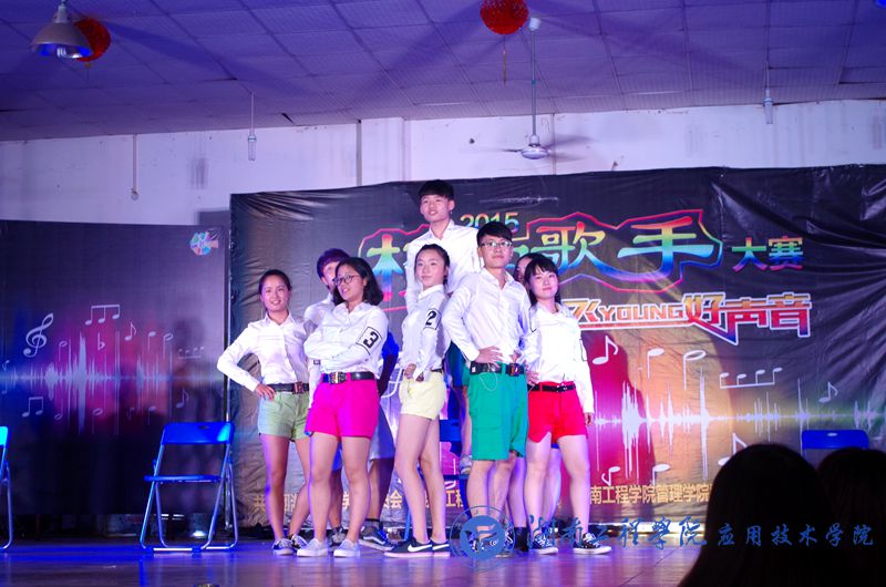 其中我院“女汉子”选手于淼的《Uptown Funk》,唱跳结合的表演震撼了全场观众的耳朵;来自管理学院的蒋小五带来吉他演奏,歌声里满含深情,现场观众享受其中;高三组合也是场上的一个亮点,细腻柔美的和声给人温暖和感动。