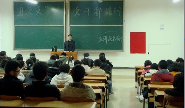 2月17日下午3点,我院团总支学生会全体干部在新校区D–102进行干部培训,此次培训由成平书记主讲,这是新学期我院学生干部培训会议的第三场。