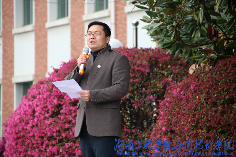3月21日中午12:30,我院三月工作讲评在南校区操场举行。我院党总支副书记徐粤宇、学生工作办公室主任刘红石、全体辅导员老师和大一至大三全体学生参加。本次讲评由徐粤宇主持。