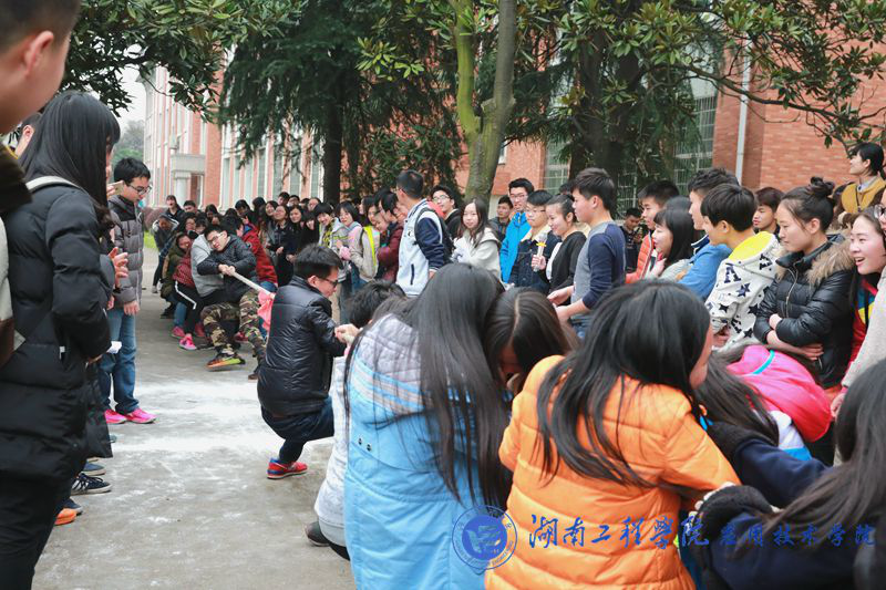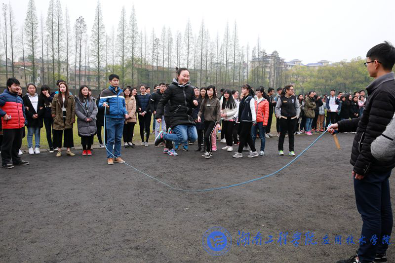 此次运动会共有七队,大一年级同学按男女混合编为六队,由体育部部长和纪检部部长带队,第七队则为学生会队,由部分学生会干事组成。运动会分四个项目:集体跳绳、拔河、踢毽子和花样接力,并采用积分制进行评分。四个比赛项目各有亮点,其中花样接力最为精彩。花样接力分为七棒,每一棒都有不同的接力方式,有男生背女生,有两人嘴咬橙子,有两人三足,还有端托盘,有男生被描口红涂腮红,还有蒙眼跑,抱篮球跳跃,男女生互换鞋子,参赛队员状况不断,观众也笑声不断。下午4点,比赛圆满结束,二队获得这次运动会第一名,一队和七队并列第二。