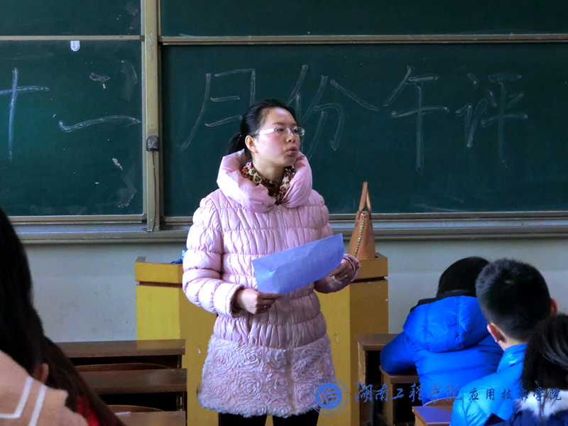 王尔奇就11月份我院的日常检查情况对安全问题,日常检查情况及学风与考风三大方面进行了评讲和通报。她强调了到课率,晚归次数的重要性。要把学风建设落到实处,营造良好的学习氛围,进入冬季,天气逐渐变冷,大功率的使用成为安全的一大隐患。她要求学生们注意防火,严禁在寝室使用大功率,同时对早操、早锻炼情况,寝室卫生情况进行了讲评。假期将近,她告诫同学们在假期中注意防火、防盗、防骗,安全出行,重点强调了学风与考风问题,要求同学们不携带手机等通讯设备进入考场,自觉抵制考试中的各种不良风气并鼓励大家认真备考,积极应战。