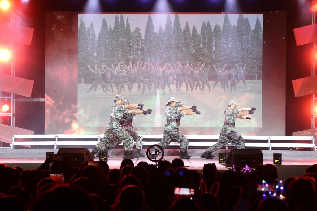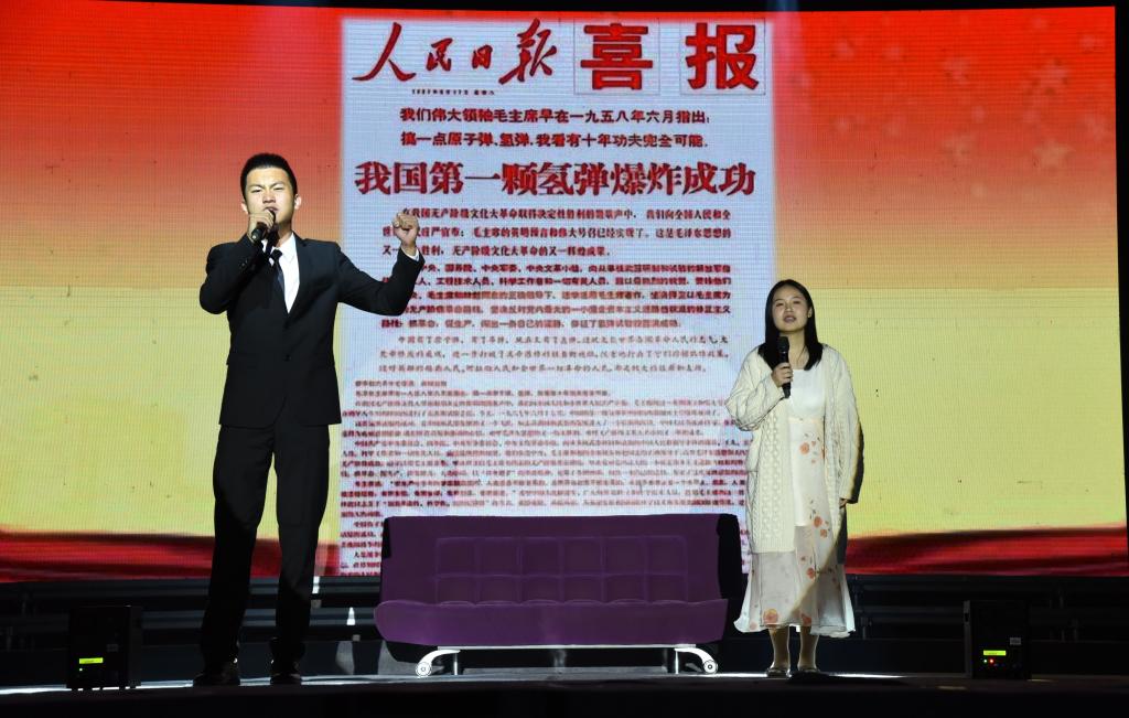 第二篇章——金桂钩思。风雨兼程,岁月如歌。黎娅和杨力舜带来的《凉凉》震惊全场,女声的清亮加上男声的低沉,将歌曲的情感表现得淋漓尽致;一张老旧的照片,承载着岁月的痕迹,讲述着历经岁月的沧桑,双人朗诵《等待》让众人走进两弹元勋之父邓稼先的一生,浓郁的家国情怀让人潸然泪下;《太极》+《擒敌拳》、爵士舞《与你共舞》、礼仪表演《花样年华》等一系列的表演别出心裁地为观众们带来一出好戏,引得场下一片惊叹。