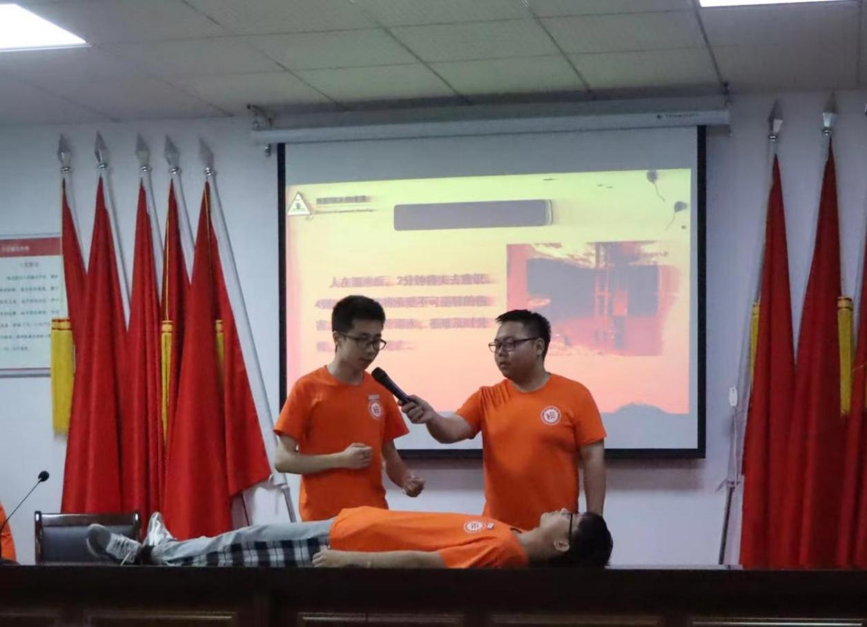 “如果发现有人溺水了,应该如何施救呢?”“把溺水者救上岸后出现休克或昏迷的情况怎么办呢?”......成员们采用人体模型进行模拟示范操作,时不时与台下的小朋友们互动,并邀请小朋友们协同进行演练,现场氛围热烈。