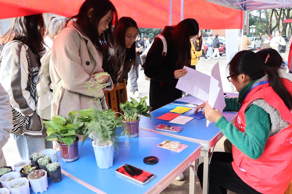 在活动现场,志愿者们热情地向同学们介绍参与活动的方法以及兑换条件,通过废物交换、集赞兑换、答题兑换等的方式可以到指定地点换取等价值的绿色植物。活动吸引大量同学积极参与,大家对本次活动产生浓厚兴趣。随着活动的火热进行,大量同学将寝室的废品带来,以废物交换的方式兑换等值的绿色植物。同时同学们也用镜头记录下活动,并通过分享集赞的方式获得一次抽奖机会,活动的宣传力度也因此提高,活动的热度居高不下。每参与绿植兑换活动,同学们都可以获得3个套圈,前往套圈场地套取绿植。看到同学们积极参与活动志愿者们笑容满面,同学们也满怀欣喜,手上的绿植更现可爱,环保意识也在笑容中慢慢升温。