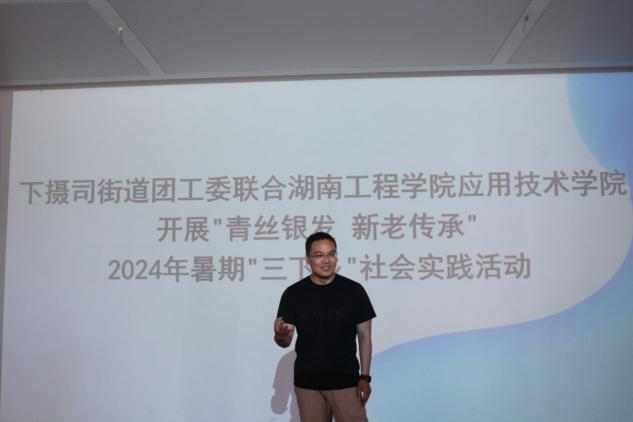 早上8点,团队志愿者们带着满腔的热情,途经30分钟抵达下摄司街道贤芳苑养老中心。下摄司街道团工委书记毛超群表示,“三下乡”作为学校至社会的过渡平台,具有重要意义,是青年学生深入基层、了解社会、服务群众的重要途径,希望实践团队的成员们能够珍惜这次机会,虚心学习、真诚服务,在“新老传承”的过程中,绽放青春色彩。