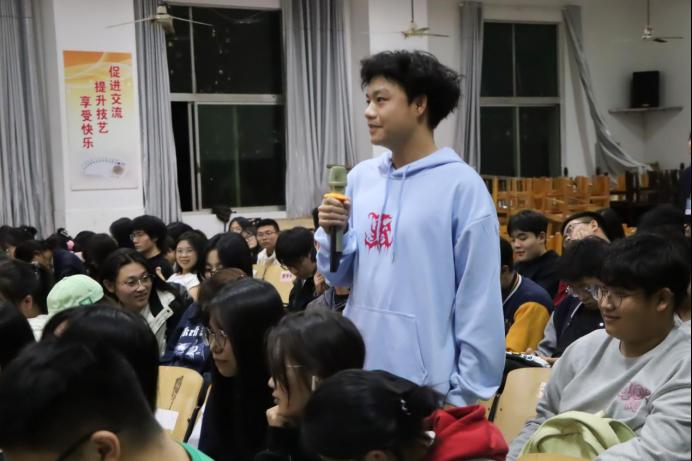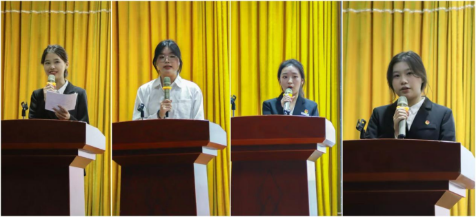 “红色青春”宣讲团成员高宣以伟人青春故事为题,号召青年人要不负时代,不负韶华,以“孩儿立志出乡关,学不成名誓不还”的精神行走在中国第二个百年的目标奋斗进程上;朱楚怡围绕历史周期律的两个答案,鼓励同学们不断地学习与探索,用智慧和力量,跳出历史周期问题,迎接美好明天;周宣杜分享了从长征时期、革命时期到抗疫时期的红色故事及红色精神,让同学们对革命有了更加深刻的感受,从先辈故事中体会到攻坚克难的意志力、不负人民的向心力、团结群众的凝聚力,希望我们代代相传,生生不息;胡梦涵以传统服饰“马面裙”受国际大牌觊觎,引出了文化自信的话题,点燃了大家对优秀传统文化的自信和热情,呼吁大家为传统文化复兴奉献青春力量,为社会主义文化强国提供青春创意。