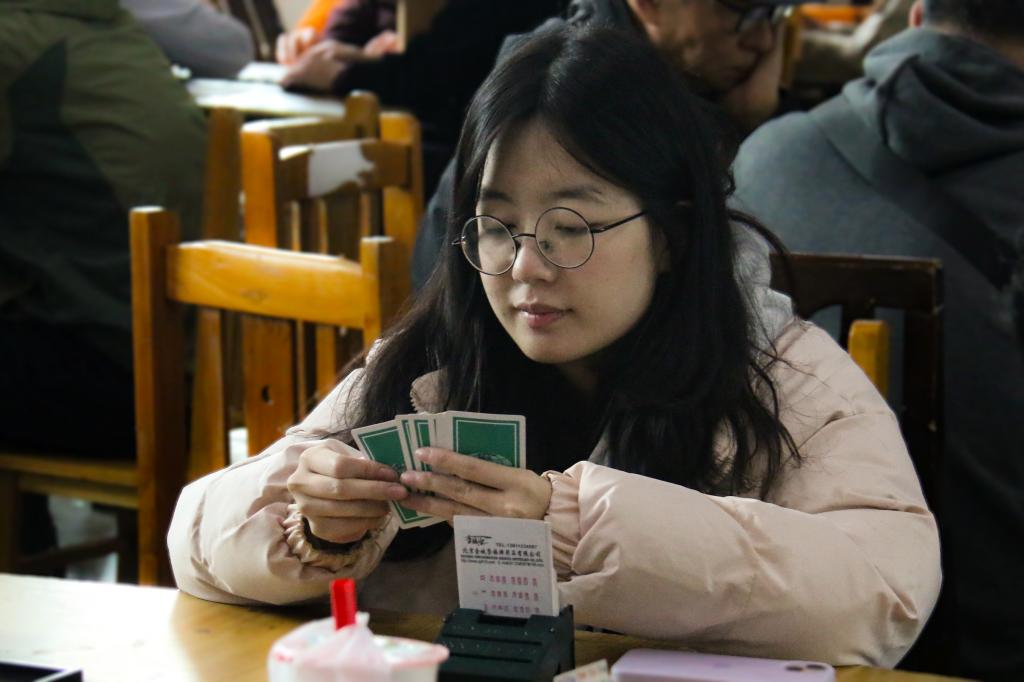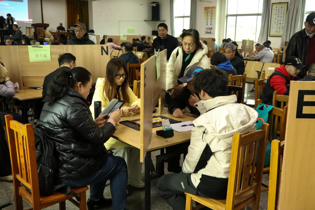 本次“恒正杯”延续了往届赛事的高水平与专业性,同时结合校内特色进行了创新。比赛现场,选手们全神贯注于每一轮叫牌与出牌,既有深思熟虑的战术布局,也有默契配合的团队协作。第二日赛程开启前,活动中心早已硝烟弥漫。晨光中,清源老年队围坐在角落,保温杯里参茶氤氲,队员们正用钢笔在纸巾上复盘昨日残局,引得数名年轻选手屏息围观,其他选手也在互相讨论,交流经验经过两天的激烈角逐,最终由清源老年队摘得桂冠
