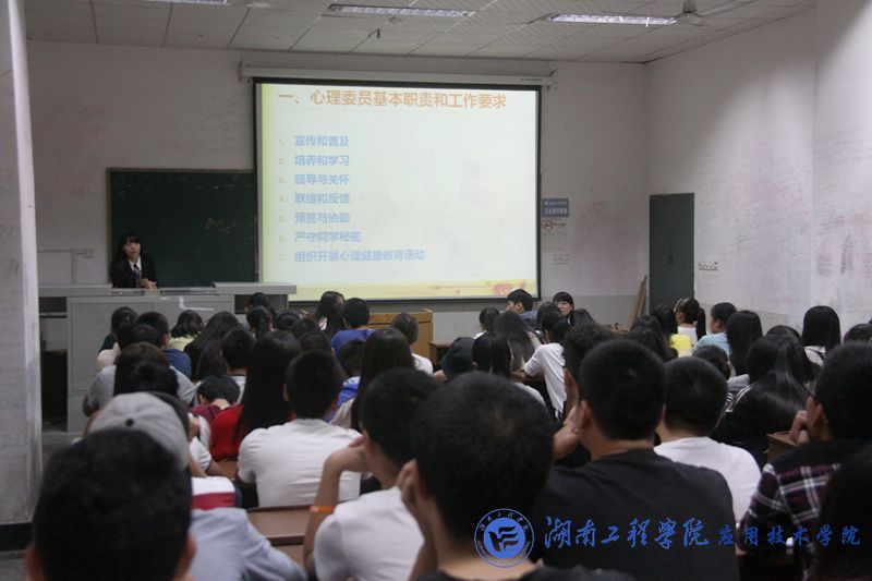 会议开始,曹时艳讲解了心理委员的基本职责和工作要求,即宣传和普及心理知识,疏导和关怀同学,预警和解决心理问题,反馈与协助老师。随后她为大家列举了当前大学生心理上常见的一些问题并强调与人相处应遵循真诚、尊重、宽容等原则。同时心理委员要抱着积极的心态用“关注”、“倾听”、“理解”、“引导”四个方法去帮助同学走出情绪困。最后她总结道,心理委员的工作理念就是“以人为本,预防为先,防治结合,服务至上”,所有工作须得围绕这十六个字展开。