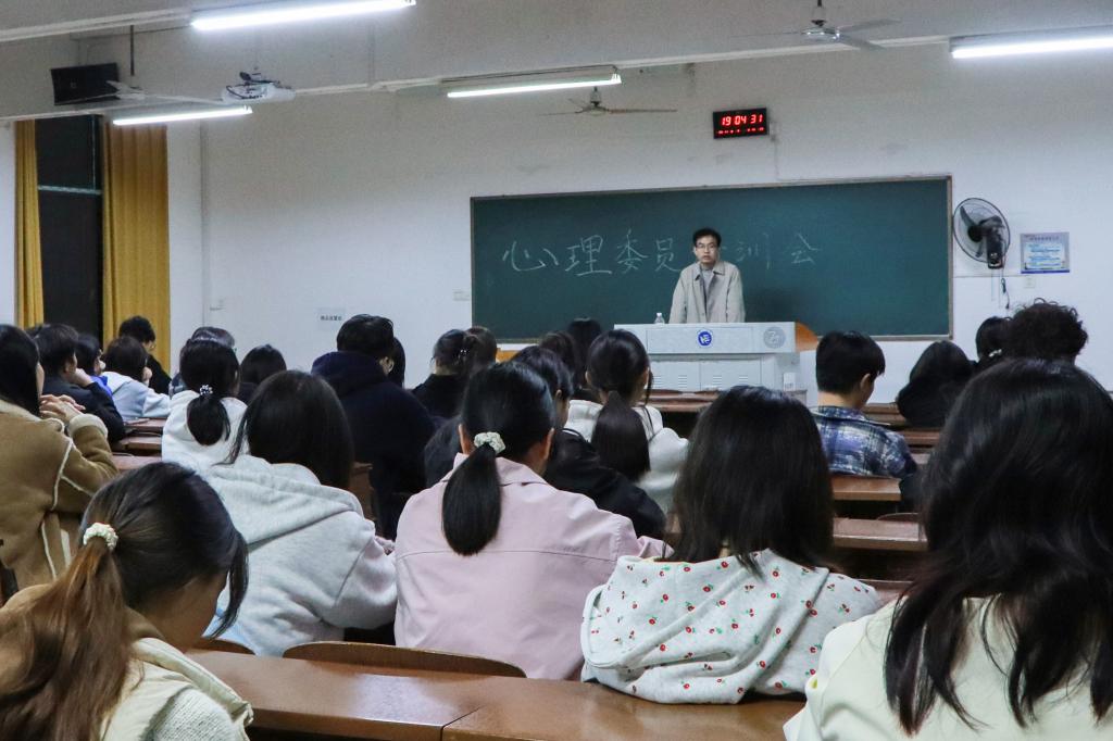 为进一步夯实校园心理健康教育工作基础,提升心理干部的专业素养与服务能力,11月2日晚,我院在第四教学楼101教室开展全院心理干部培训,特邀院团委书记张琛主讲,全体心理委员参加。