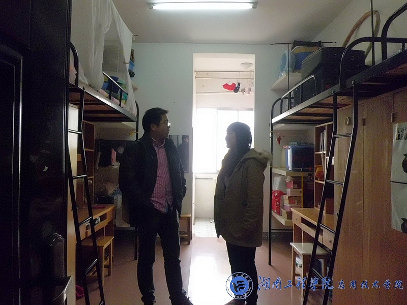 11月29日中午,我院院党总支副书记徐粤宇,带领全体班主任老师以及学生干部来到主校区学生宿舍,对宿舍的安全卫生情况进行了细致的检查。