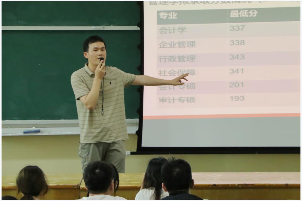 张伟结合近五年考研报名人数、录取比例等关键指标的变化趋势,分析了考研难度情况,让同学们对考研形势有了清晰的认识;对考试内容、科目及流程进行了详细解读,帮助同学们构建起完整的考研知识框架。