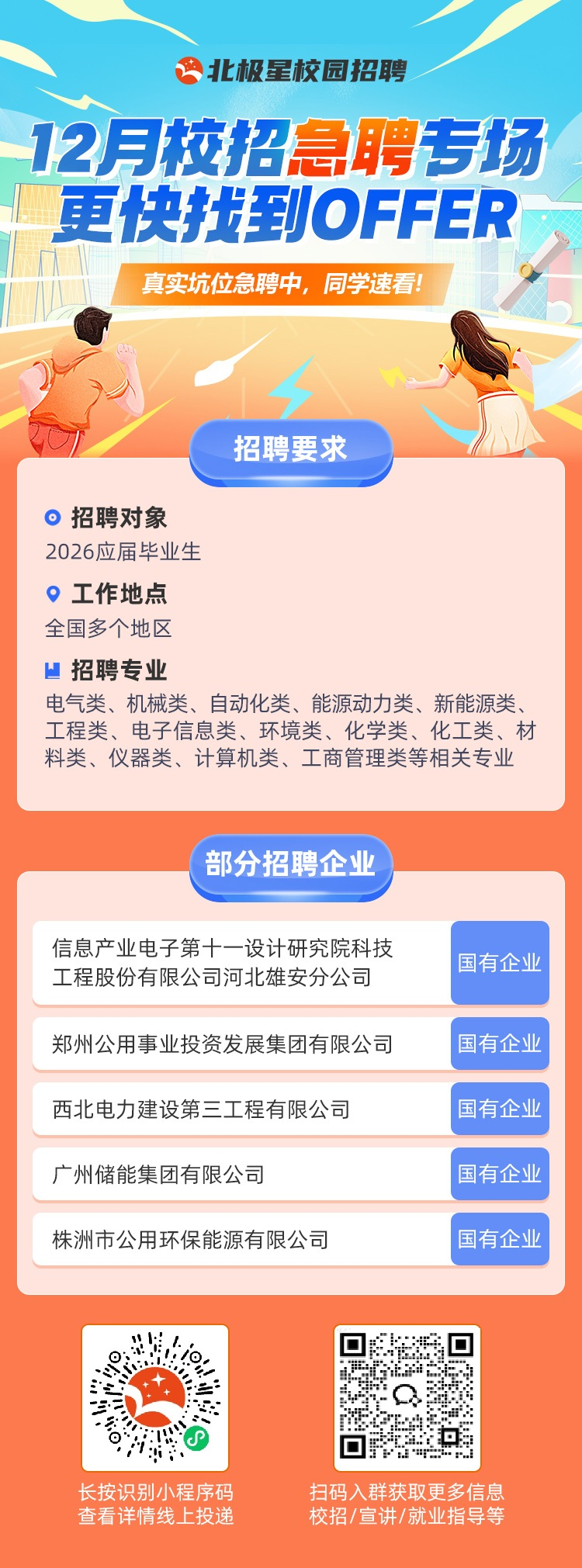 12月的校招急聘专场,是梦想启航的港湾,也是价值实现的起点。让我们共同期待,在这场人才与机遇的盛会中,见证青春与时代的同频共振,开启一段共赢未来的崭新篇章!