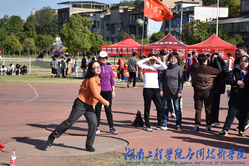 本次运动会中,教工组开设100短跑、铅球、16×50米接力赛等多个项目。上午9:40,男子铅球运动员们为此次比赛做着热身运动。紧接着,运动员将铅球举在右手,弯曲肘部,用头和右手夹住7.26公斤的铅球,慢慢地降低重心,等待力量爆发的那一刻。我院1717号刘杰以10.21米的成绩获得第七名。女子铅球中,1727号陈果以4.53米拿下第八名。下午14:04,在百米赛场的起点上,教工运动员们等待着裁判员的指令响起。一声枪响,一阵爆发式的呐喊:“老师加油!老师加油!”,运动员们似离弦的箭冲向终点,跑出属于他们的风采。赛后老师们脸上浮现喜悦的笑容,纷纷感慨自己活力尚在。