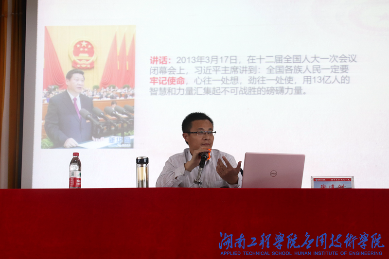 讲座围绕“中国共产党人的初心与使命”展开。陶连洲首先简要阐述了“不忘初心、牢记使命”主题提出的过程,重点论证了如何把握和践行初心和使命,强调要在科学社会主义的理论逻辑中把握中国共产党人的初心,要在中国社会发展的历史逻辑中把握中国共产党人的历史使命,要在中国特色社会主义新时代的实践中践行中国共产党人的初心与使命。他指出改革开放四十多年来,中国比历史上任何时期都更接近世界舞台的中央,作为新时代的青年要接好历史接力棒,坚定理想信念,在实现中国梦的生动实践中放飞青春梦想,在为服务人民的不懈奋斗中坚定信仰。
