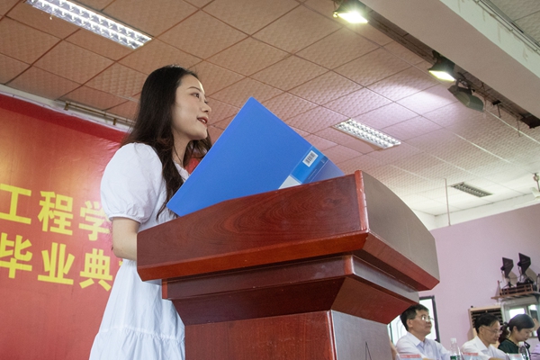 教师代表周舟妤栎作临别寄语,她深情回忆了与同学们共同度过的四年时光,希望他们珍惜这段美好的经历,也带着这份美好回忆,以一颗真诚,勇敢,求知的心继续前行,创造更加精彩的人生。