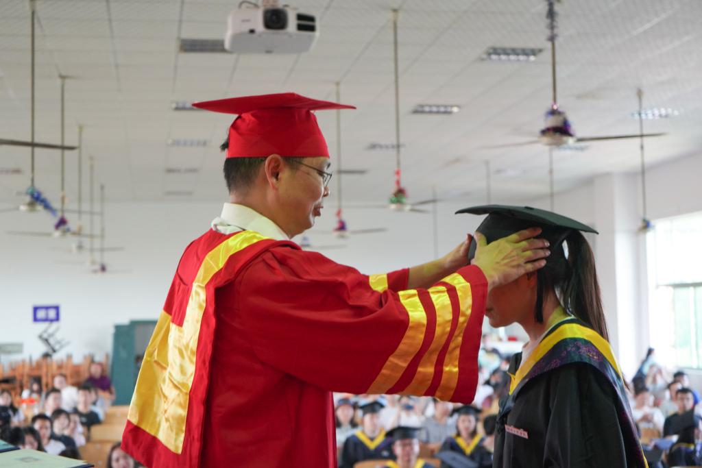 黎娅宣读bv1946伟德国际始于英国省市校级优秀毕业生表彰文件,bv1946伟德国际始于英国37人被授予省级优秀毕业生,32人被授予市级优秀毕业生,102人被授予校级优秀毕业生。现场领导为优秀毕业生颁发荣誉证书,为毕业生代表颁发毕业证书,李光中为毕业生代表正冠,拨穗,授予学位证书。