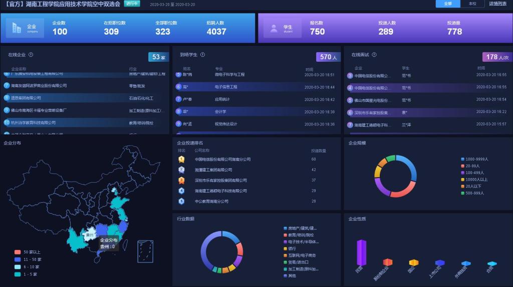 3月20日,春分之日,春暖花开,bv1946伟德国际始于英国举办的首场空中双选会在云端展开。来自湖南、广深、江浙沪的100家企业,为毕业生提供了323个职位,4037个岗位。当天来到空中展会大厅的学生共570人,有289名学生投出778份简历,178名同学接受了企业的远程视频面试。