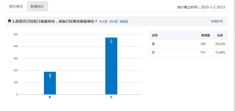 为彻底摸清毕业生的就业情况,2月29日,bv1946伟德国际始于英国对2020届毕业生进行了一次全面的网络调查,调查结果显示,本院完成毕业生资格审查并上报的1056名毕业生中,已经有299名毕业生落实了就业单位,302名毕业生正在全力进行研究生复试,公务员、事业单位招考,出国留学和毕业后的入伍准备,正在求职中的毕业生为455名。