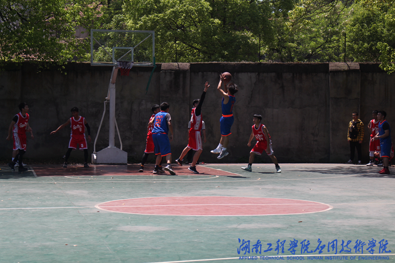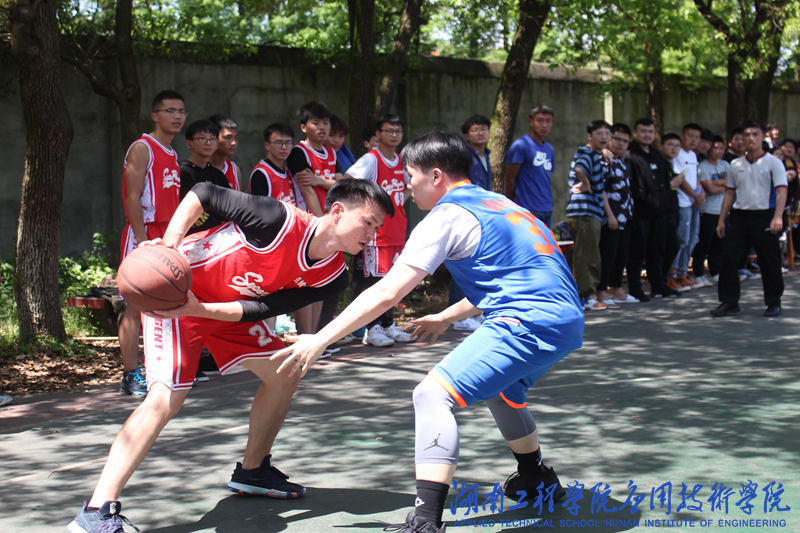 4月17日中午12:30,伟的国际1946bv院系篮球赛第二场在南院正式打响,比赛双方为应用技术院篮球队(蓝队)VS 机械工程学院篮球队(红队)。bv1946伟德国际始于英国党总支副书记徐粤宇、团总支书记唐冰到场指导和观看比赛。