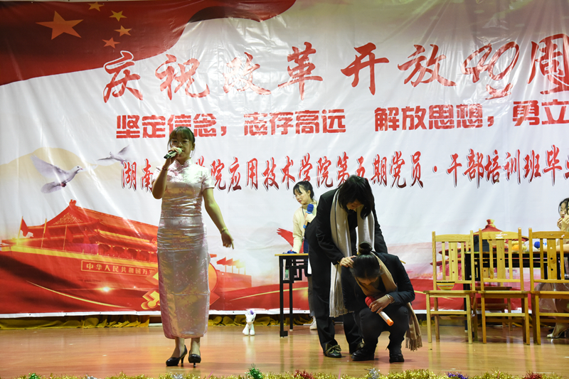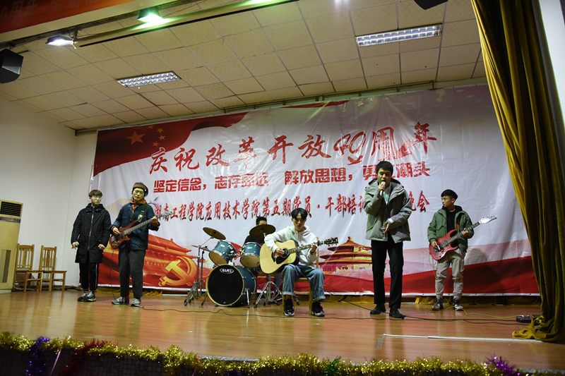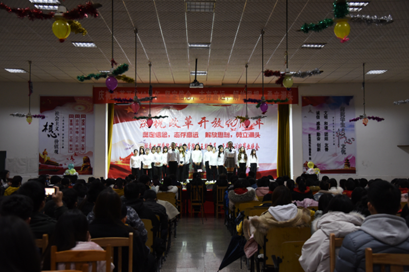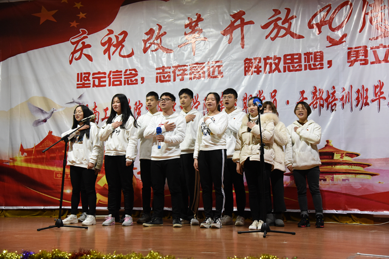 12月28日19:00,我院于第一教学楼四楼举行了庆祝改革开放40周年暨第五期新党员干部培训班结业典礼,参与此次活动的领导有我院党总支书记李爱国、党总支副书记徐粤宇、学生工作办公室主任刘红石,团总支书记唐冰。本次晚会由来自工商管理1781刘倪萍、金融工程1782胡皓宇、金融工程1881江睿、物流1881陈刘祥进行主持。观看本次晚会的有党员干部、各部门干事代表以及大一、大二各班的代表。