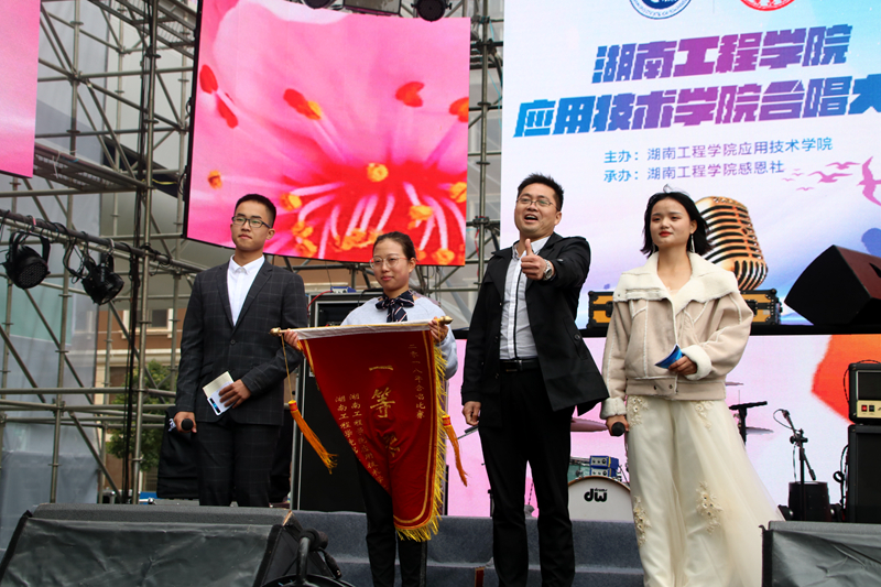11月11日上午10:00,bv1946伟德国际始于英国“改革开放四十年,青春奋进正当时”主题合唱比赛决赛在湘潭市万达广场拉开帷幕。院党总支副书记徐粤宇、团总支书记唐冰、学生辅导员老师曹时艳、班主任老师周舟妤栎出席并担任评委。