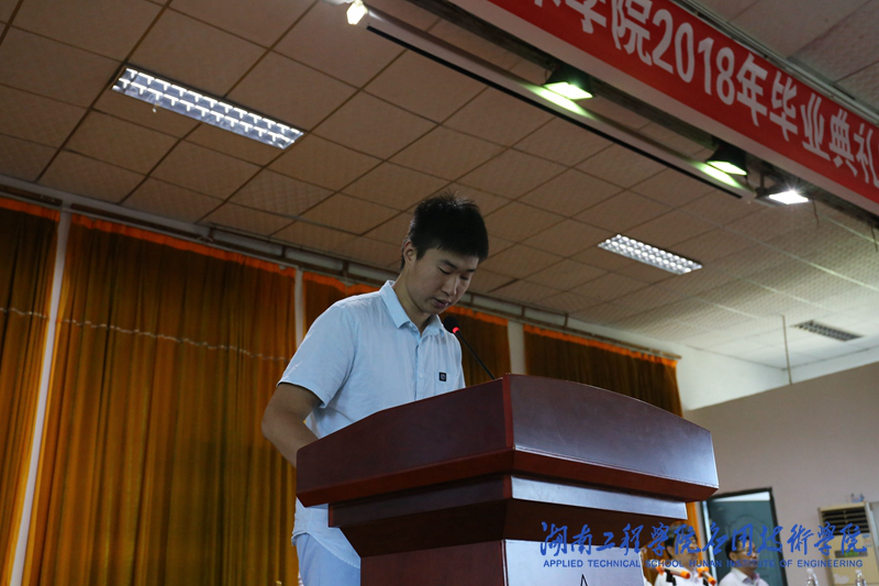 学院招生就业办齐立云代表全体教师作临别寄语,字字叮咛和祝福,饱含着对同学们的万千牵挂和期盼。电气工程专业1481班粟耀同学代表全体毕业生发言,追忆大学青春岁月,感怀四年同窗情谊,表达对老师们最诚挚的谢意,也表达对母校的无限感激与眷恋。土木工程1581易禹代表在校学生发言,感恩学长学姐们的无私帮助,并为毕业生送去诚挚的祝福。