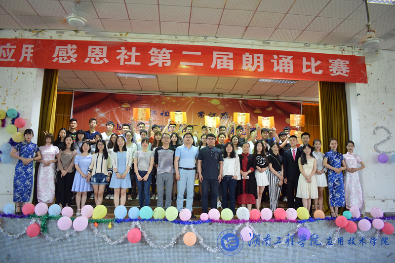 5月16日下午1点,由我院感恩社承办的“心怀祖国,常怀感恩”主题朗诵决赛在南校区第一教学楼四楼活动中心举行。学院党总支副书记徐粤宇、学生工作办公室主任刘红石、团总支书记唐冰、辅导员老师蒋惠筠、曹时艳、陈玄哲出席比赛并担任评委,大赛由周刚玉、徐芳芳、罗勇斌、谭雅丹主持。
