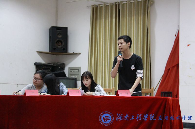 4月9日晚7:00,我校第十二届辩论赛第三场比赛在主校区活动中心顺利举行,并特邀湘潭大学校辩论队成员担任比赛评委。