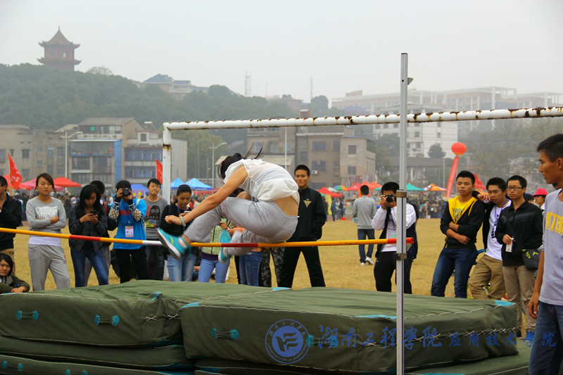 我院参赛选手张萍表现突出,第一跳就获得成功。在最后的决赛中,起跳高度已增加到1.2米了,张萍的脸上也表现出了紧张的神色,观众为她加油打气,张萍上场,助跑、起跳、跨越,优雅着地。一串连贯的动作似乎已经诠释了所有。