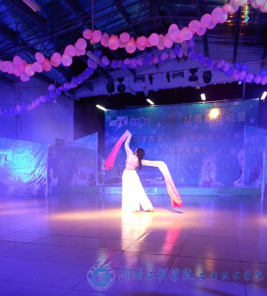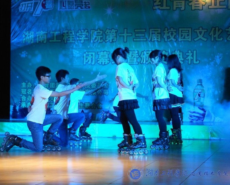 校学联的一场舞曲让全场观众眼前一亮,在震耳欲聋的欢呼声中,晚会拉开了帷幕。晚会中,灌注青春与活力的健美操、抒情优美的歌曲、幽默感人的小品、活力四射的街舞、刺激的轮滑、优雅的小提琴曲、气势磅礴的武术等同学们喜闻乐见的表演轮番上场,精彩连连不断,鼓声欢呼声此起彼伏。颁奖仪式与节目穿插进行,获奖选手捧着一张张包含着辛酸汗水的荣誉证书,赢得了台下观众的热烈欢呼。我院校园歌手大赛总冠军邓淑君的一首《剪刀嘴》将活动推向了高潮,整场晚会高扬青春旋律。