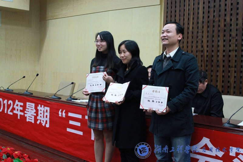 我院在三下乡活动中取得了可喜的成绩,获得了“优秀组织奖”的光荣称号,物流0982班毛婷提交的《三下乡实习心得》获得社会实践调研报告与优秀论文一等奖;工程管理0981班袁小庆、工程管理0981班向传果、会计1088班王琥玮、市营1081班成琳、会计1082班孔令杰5位同学荣获“先进实践者”称号;物流0982班毛婷、计算机1081班李子璇、人力1082班安雨、物流1082班陈怡欣、人力1081班曹争5位同学获得“三下乡优秀个人”称号。