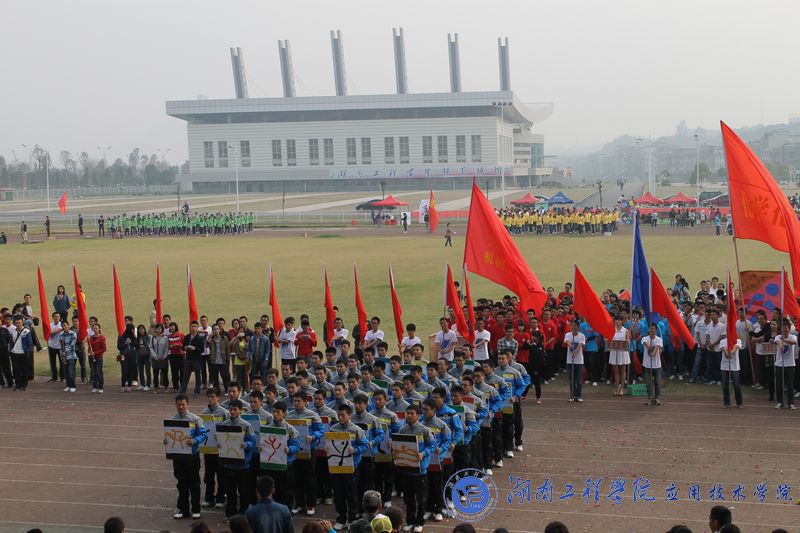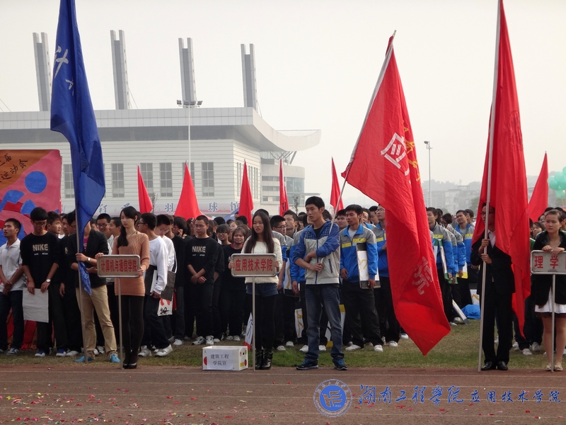 开幕式在庄严的国歌声中拉开帷幕。体育馆现场彩旗飘飘,欢声阵阵,各院学生都在积极的期待着运动会的召开。伴随着振奋人心的《运动员进行曲》,来自各学院的14支方阵代表队犹如钢铁之师从主席台前经过。我院载着去年冠军之师的荣耀,重新踏上了战场。伴随着气势磅礴的“至尊为谁,唯吾应院,应院威武”的响亮口号,我院代表队身着蓝色运动服踏着坚定整齐的步伐、高呼“山中猛虎,水中蛟龙,湖工应院,卧虎藏龙”的口号闪亮出场。随着神曲《江南style》的响起,我院拉拉队在运动场上跳动的热舞,顿时吸引了观众们的目光,动感的节奏,幽默的舞姿,充分体现了我院学子的无限活力。然后,我院50名运动员高举比赛项目的图标列成矩阵,并不断地变换,默契地深蹲、起立排列成“数字倒计时”,向大家展示我院的凝聚力以及同学们对体育的无比热爱,博得了现场观众雷鸣般的掌声与欢呼声。这是一支被誉为冠军之师,龙虎之队的队伍,他们又一次给大家带来了精彩与震撼。