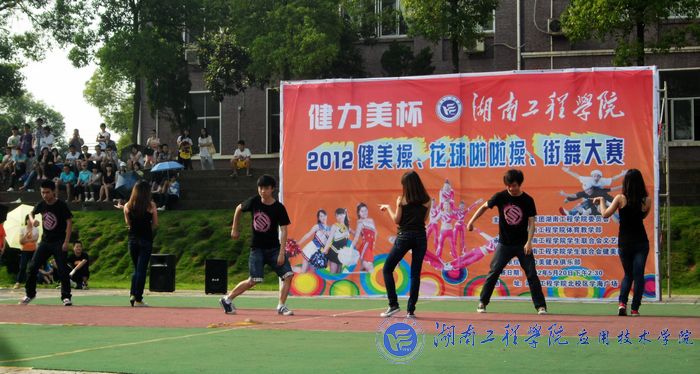 5月20日下午,我校2012年度“健力美杯”健美操、花球啦啦操、街舞大赛在主校区学海广场举行。活动以“我运动、我健康、我快乐”为主题,全校共12个学院、259名同学参加此次大赛,创下历史之最。我院代表队伴随着优美的音乐上场,她们身着具有活力的服装,动作整齐,队形多变。她们巧心构思摆出了一个个盛大的造型,既凸显出体育的刚劲,又不失舞蹈的柔美。力与美的和谐统一让细节与整体的平衡发挥得恰到好处,时而严整时而灵动的队列诠释出属于她们的活力与激情。她们用梦想谱写自由的篇章,用动感的音符跳出生命的旋律,用轻快的舞步创造年轻的感动。舞台上看到她们舞姿优美,让同学们大开眼界也为之惊叹,评委老师也被她们征服了。比赛现场,更有离退处的27位老师的广场舞表演为大家助兴,演绎着老一辈的激情与活力。