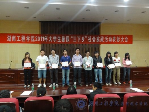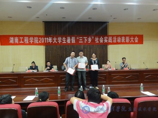 10月19日晚7:30,我校2011年暑假“三下乡”社会实践活动总结暨表彰大会在主校区图书馆二报告厅隆重举行。学校副校长李希恒,校团委书记张小刚,校学生工作处副处长、校团委副书记毛晓华等出席表彰大会,大会由校团委办公室主任曹云野主持。